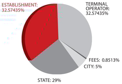 Net Terminal Income (NTI): for every dollar that is put into the video gaming terminal, minus the credits paid out to a winner, the remaining money is split up equally follows: